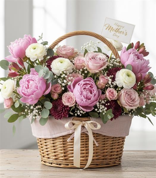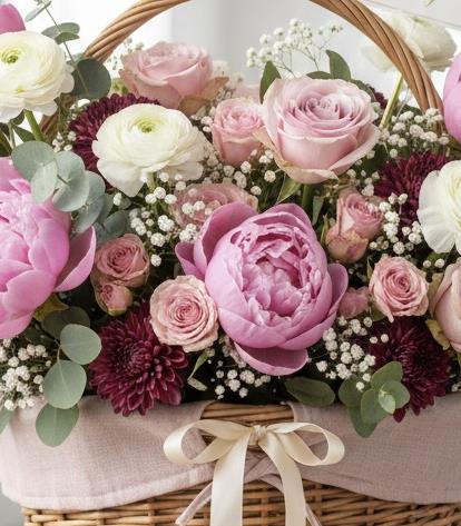 Celebrate the woman who does it all with an arrangement as multi-faceted and beautiful as she is. This curated basket combines the soft, pillowy textures of spring’s most coveted blooms with a deep, sophisticated colour palette that feels both timeless and modern.