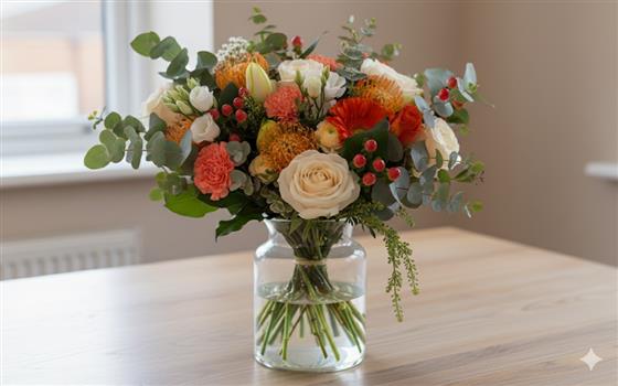 Please note that due to the seasonal availability of flowers it may be necessary to vary individual stems from those shown. Our skilled florists may substitute flowers for one similar in style, quality and value. Where our designs include a sundry item like a vase or basket it may not always be possible to include the exact item as displayed. If such an occasion arises we will make every effort to replace the item with a suitable alternative.