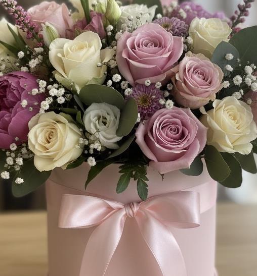 Celebrate that special person this Mother’s Day with a beautifully curated hatbox bursting with soft romance and timeless elegance. This luxurious arrangement blends delicate textures and dreamy tones, creating a gift that feels both heartfelt and indulgent.