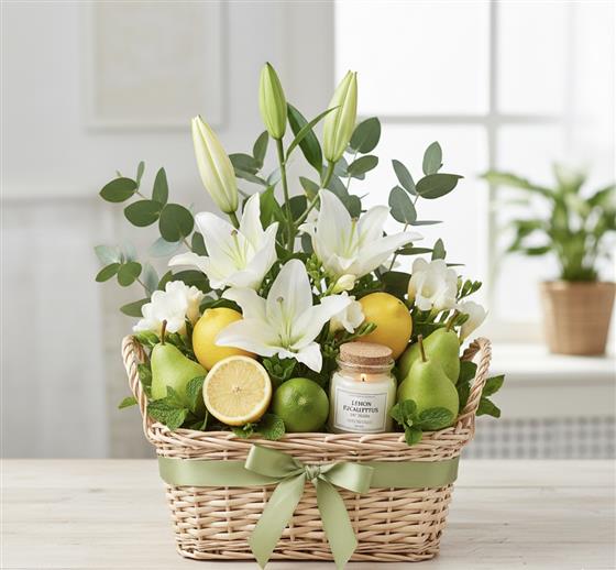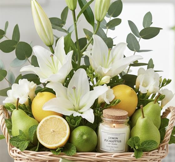• Flowers: White lilies, white freesia, and eucalyptus (very calming scent).